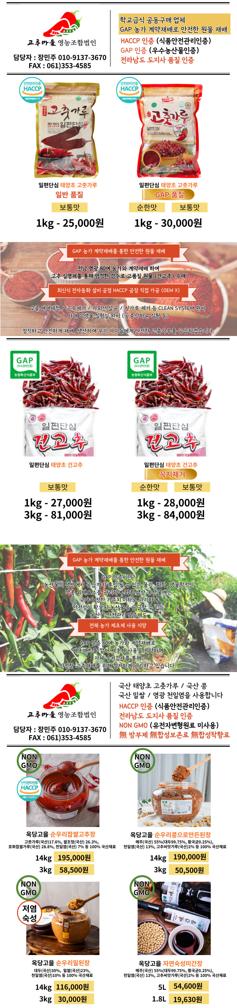 ★고추가루학교급식공동구매업체★22년 4월 단가 영광 고추마을영농조합법인 ♥GAP인증고춧가루♥ 단가입니다!★일반25,000원★G…