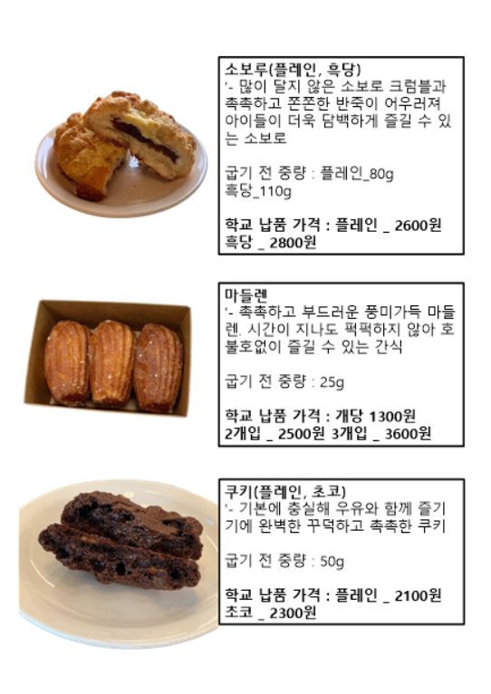샌드위치, 선물세트, 과자, 간식 베이커리류 모두 가능합니다 !