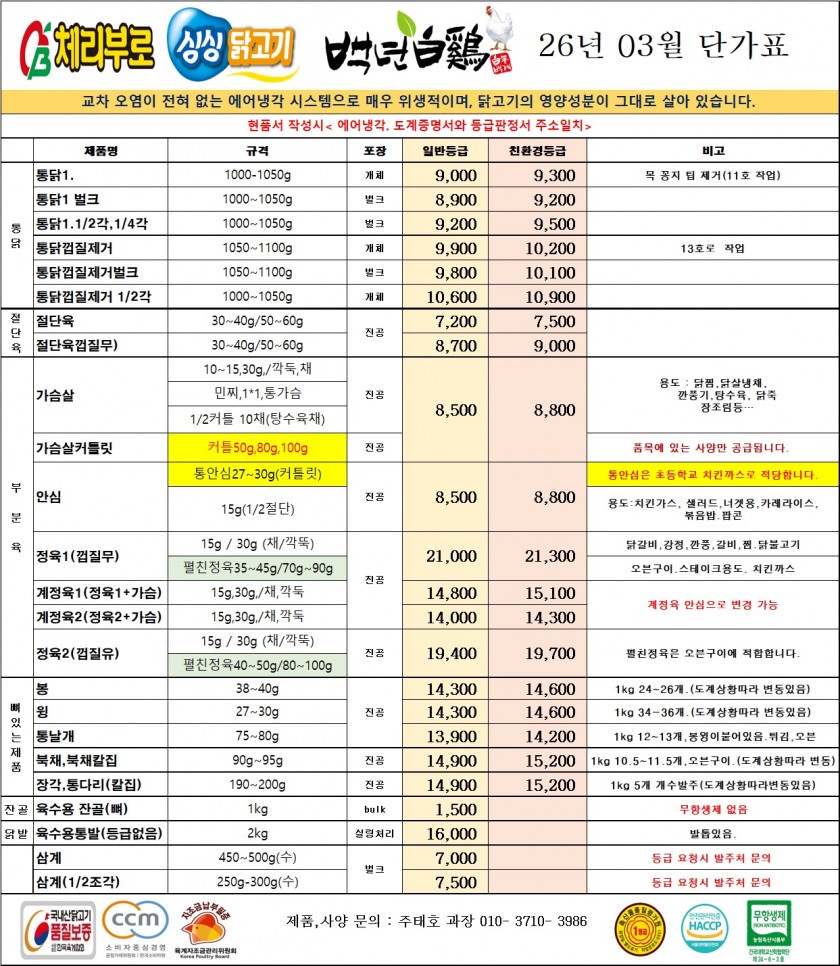 - 다음글호남푸드 ▶3월 [새싹] 우리농가수 단가표◀-100%국산참기름,고춧가루(시장조사),새싹자연산골뱅 26.02.04