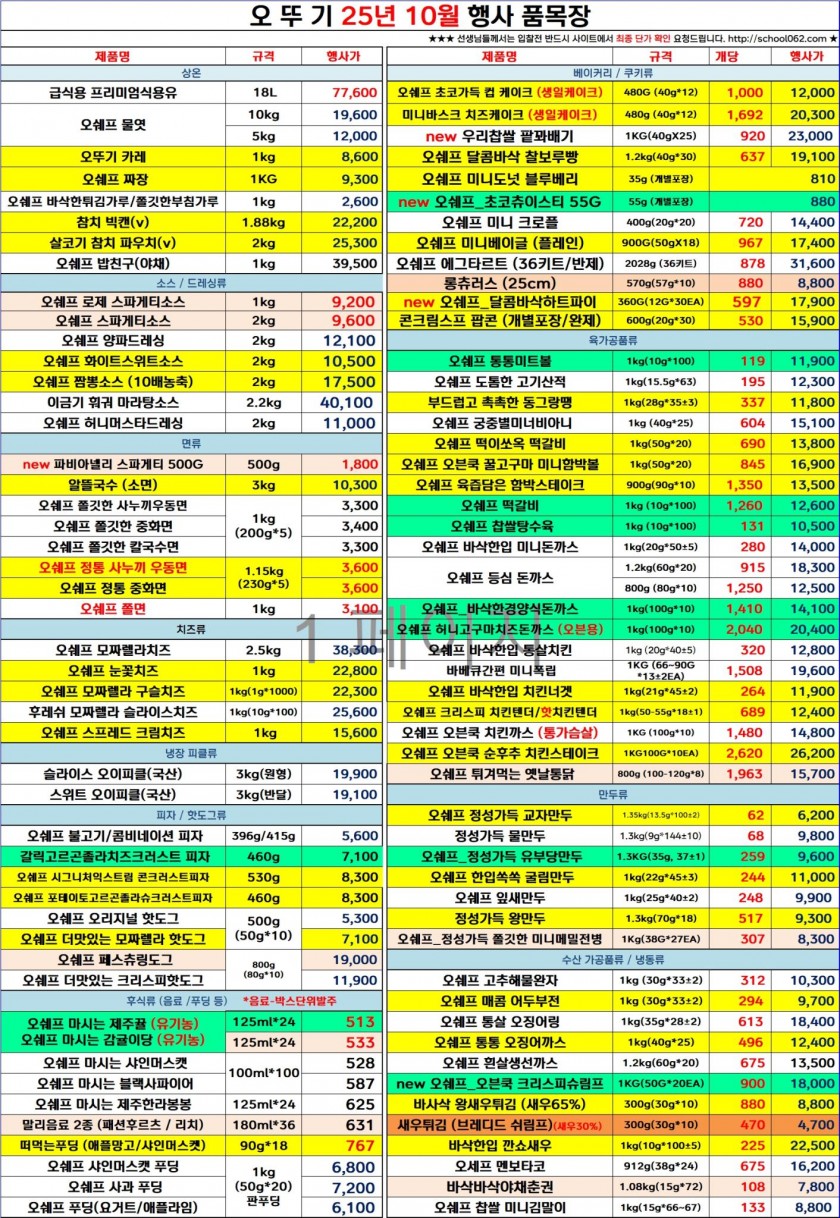 - 이전글나결fs 총단가표2.학교간닭/싱싱플러스/천일식품/한국전통떡/착한애/우리밀농협/다온매실 25.09.11