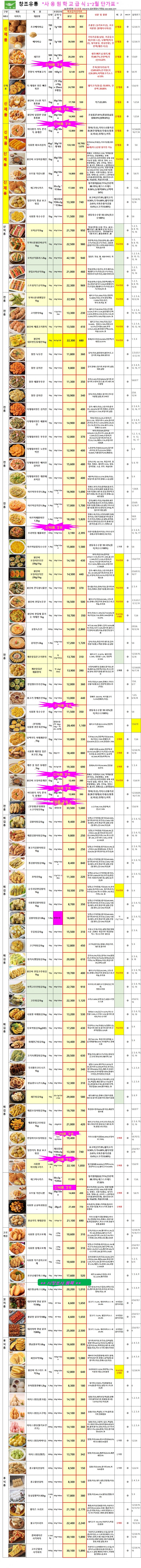 ▣창조유통 2025년 12월 사옹원/동해물가/모닝플러스/에쓰푸드(도담도담)/모두팜/더셰프/남양/임실/롯데 단가표 입니다▣
